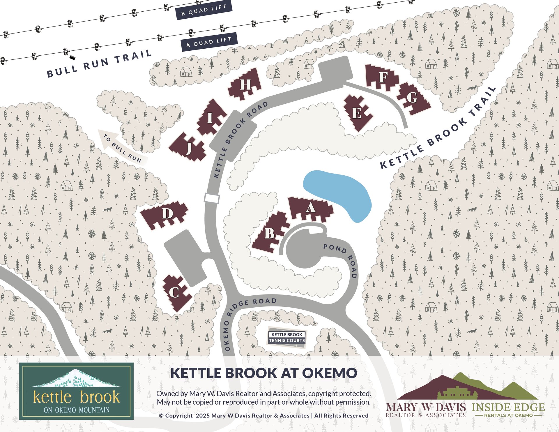 Views range from ski trails to the community's ponds to the distant valley.